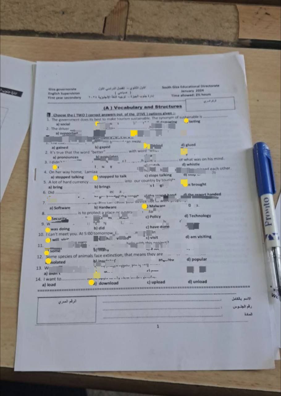 تداول أجزاء مزعومة لامتحان الإنجليزي لطلاب الصف الأول الثانوي 2024 بالجيزة