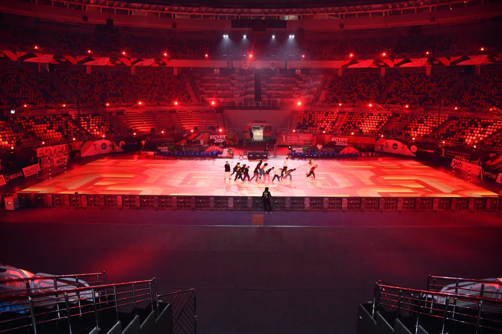 قبيل الافتتاح غدا.. وزير الرياضة يطمئن على استعدادات حفل افتتاح بطولة أمم إفريقيا لليد