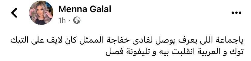 وكانت كتبت منة جلال منشورًا، عبر حسابها الشخصي بـ فيس بوك، أعلنت من خلاله تعرض فادي خفاجة لحادث سير وهو لايف على حسابه الشخصي بـ تيك توك، حيث قالت: يا جماعة اللي يعرف يوصل لـ فادي خفاجة الممثل، كان لايف على تيك توك والعربية انقلبت بي وتلفونه فصل.