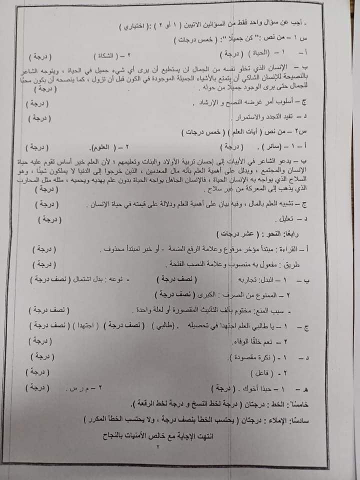 نموذج إجابة امتحان اللغة العربية 2024 بالقاهرة