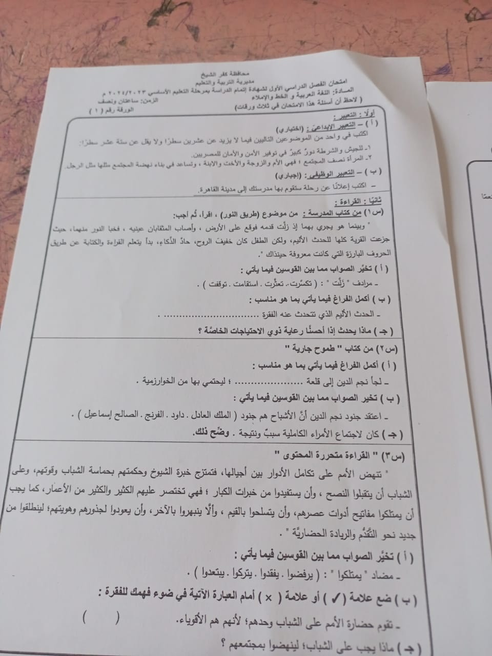مرادف كلمة زلت يثير الجدل بين الطلاب في امتحان العربي بـ إعدادية كفر الشيخ