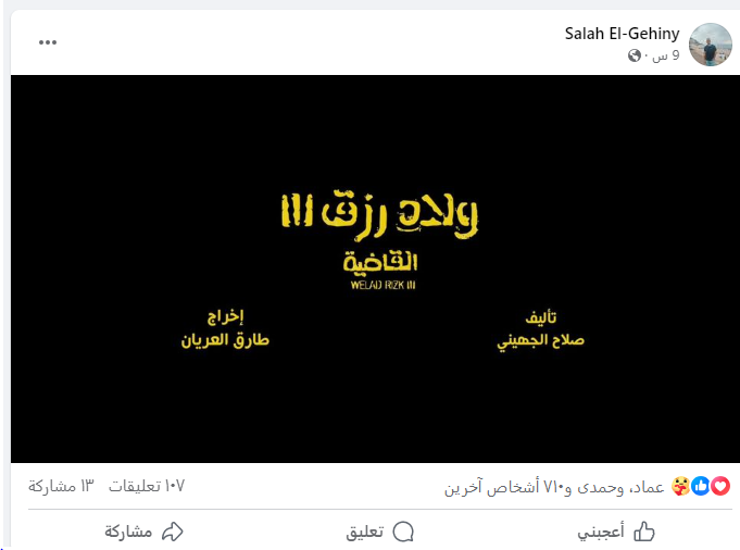 سبق وروج المؤلف صلاح الجهيني لـ فيلم ولاد رزق الجزء الثالث، بطولة الفنان أحمد عز، حيث نشر البوستر الأولي للعمل عبر حسابه الشخصي على فيس بوك، وجاء فيه: ولاد رزق III، القضية، تأليفه وإخراج طارق العريان.