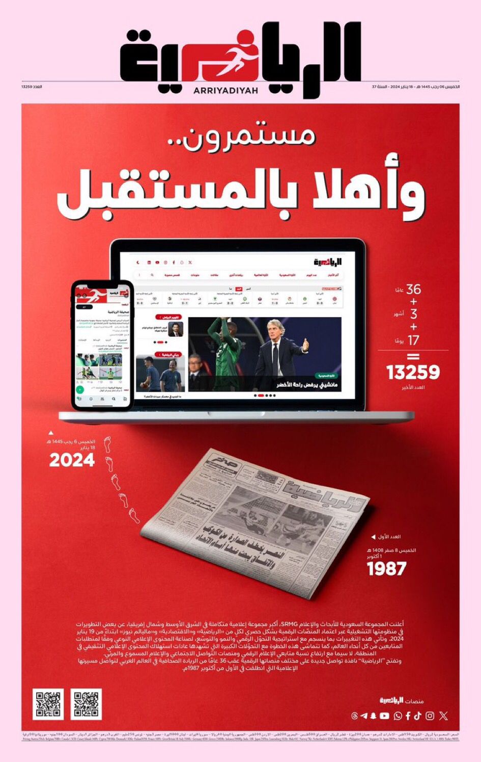 انطلاق ضربة البداية للصحيفة الرياضية السعودية كانت من عام 1987 بالرياض حيث بدأ الإصدار الأول لصحيفة الرياضية السعودية، لتنتهي اليوم في 19 يناير 2024، وذلك بعد استمرارها لمدة 37 عامًا.