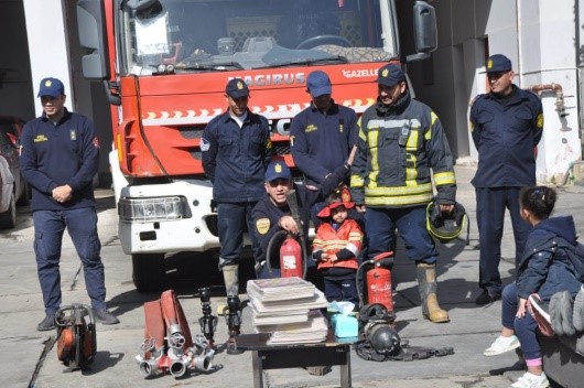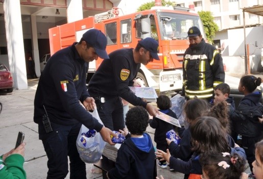 كما تم إلقاء محاضرة للأطفال تعرفوا خلالها عن الدور المنوط لإدارة الحماية المدنية فى التعامل مع الكوارث الطبيعية والبشرية بكافة أقسامها والتي تشمل الإطفاء – الإنقاذ – المفرقعات.