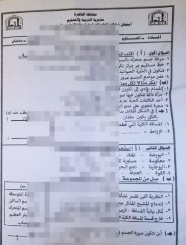 تداول امتحان العلوم لـ طلاب الشهادة الإعدادية بالقاهرة