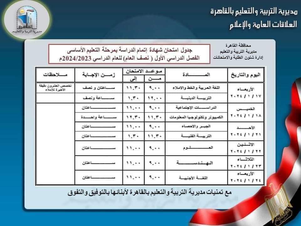 بينما ينتهي طلاب الشهادة الإعدادية بالقاهرة امتحانات الفصل الدراسي الأول بالقاهرة غدًا الأربعاء بمادة اللغة الأجنبية.