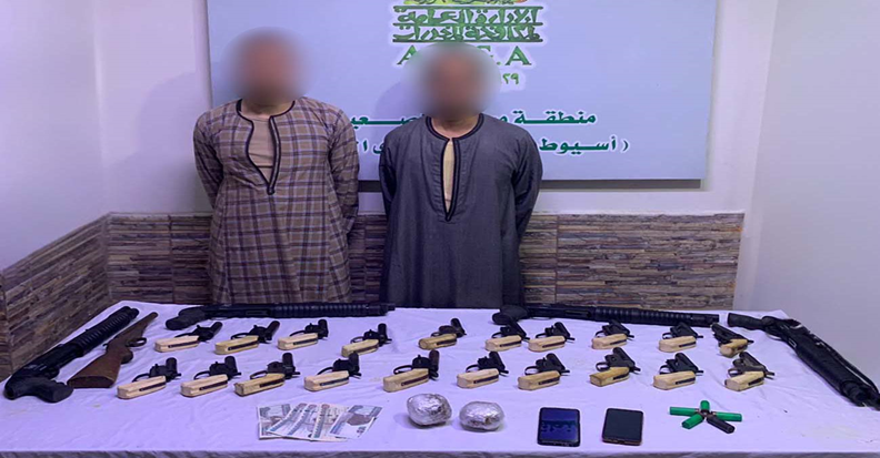 تمكنت الأجهزة الأمنية بوزارة الداخلية، من ضبط عاطلين بأسيوط تخصص نشاطهما الإجرامي في الإتجار بالأسلحة النارية والمواد المخدرة.