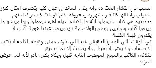 بينما رأى الفريق الآخر، أن رواية كنزي مدبولي، ليس لها علاقة بعالم الروايات والقراءة، وأن الجمهور الذي تزاحم على شراء الرواية، جمهور سنه صغير لا يفقه شيء عن اللغة وعالم القراءة.