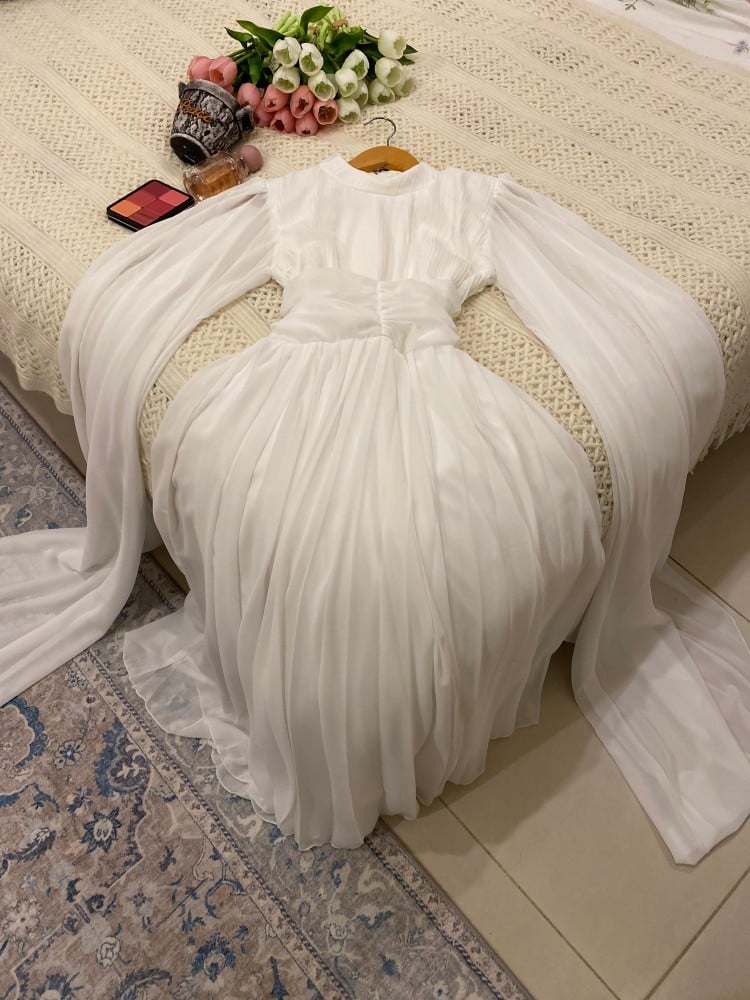 - حلم الفستان الأبيض الطويل للعزباء يدل على صلاح حالها مع الله، وشدة إيمانها وتوكلها عليه.