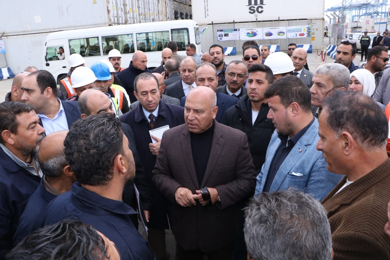 ثم عقد الوزير لقاءً بالعاملين بالشركات العاملة بالمشروعات الجاري تنفيذها بالميناء، ووجه وزير النقل؛ رئيس هيئة ميناء دمياط وقيادات الهيئة والشركات المنفذة للمشروعات بالميناء، على ضرورة العمل على مدار الساعة لتنفيذ كل المشروعات والالتزام بالجداول الزمنية المحددة لإنهاء كل مشروع منها، مشيرًا إلى أن الحكومة المصرية ممثلة في وزارة النقل تنفذ خطة شاملة لتطوير قطاع النقل البحري وتطوير جميع الموانئ البحرية المصرية من خلال الاستفادة من الموقع الجغرافي للموانئ المصرية، وتعظيم مزاياها التنافسية لخدمة التجارة الدولية، وزيادة حصتها من تجارة الترانزيت والاستفادة القصوى من التسهيلات المتاحة بالموانئ.
