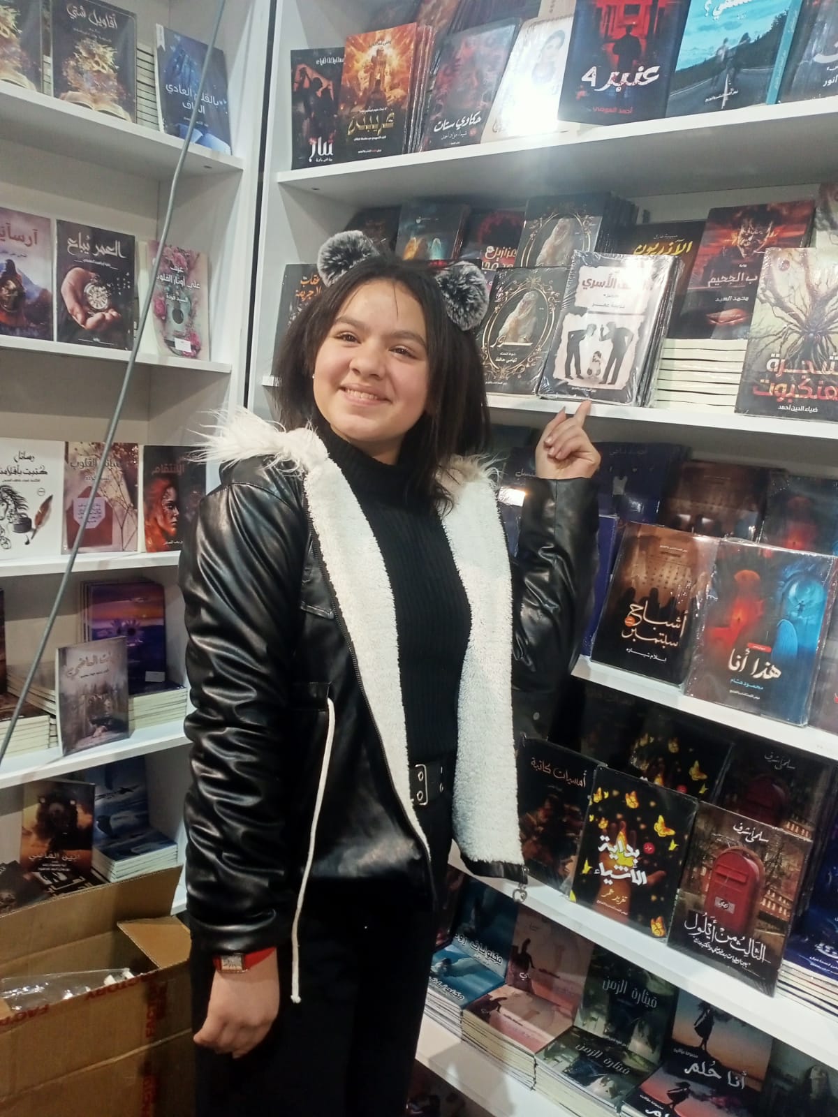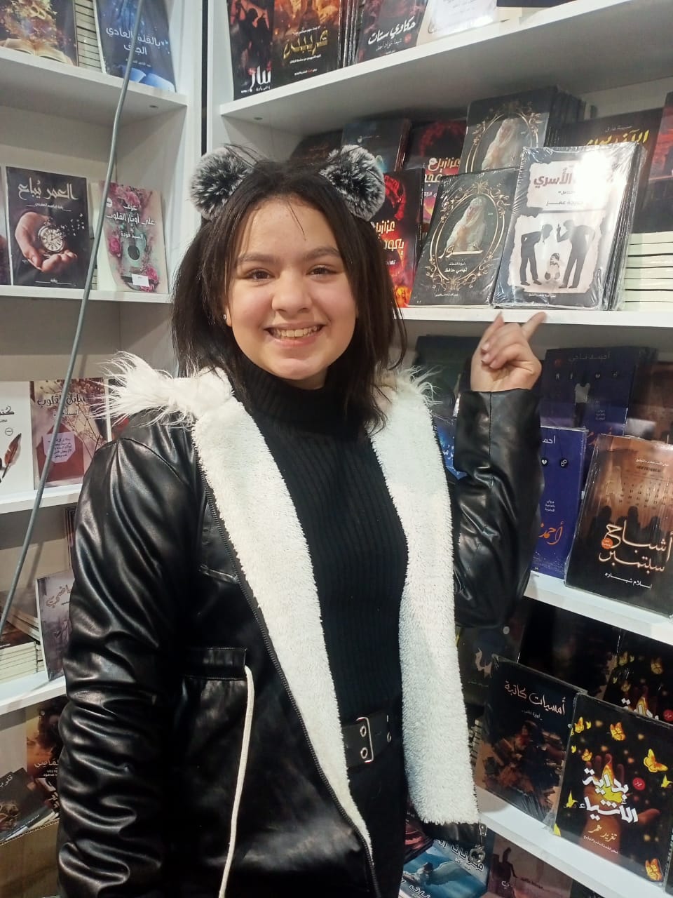 وعن مشاركتها في معرض الكتاب كأصغر كاتبة، ردت قائلة: مبسوطة جدًا إني أصغر كاتبة في المعرض، وقدرت أحقق ده، وزملائي كلهم شجعوني وكانوا كلهم يريدون الكتاب، وحلمي إني أكون ممثلة.. ونفسي أمثل مع أحمد العوضي، وكاتبة ومهندسة، وبحب كتابة الروايات جدًا.