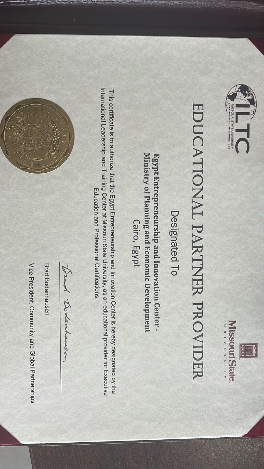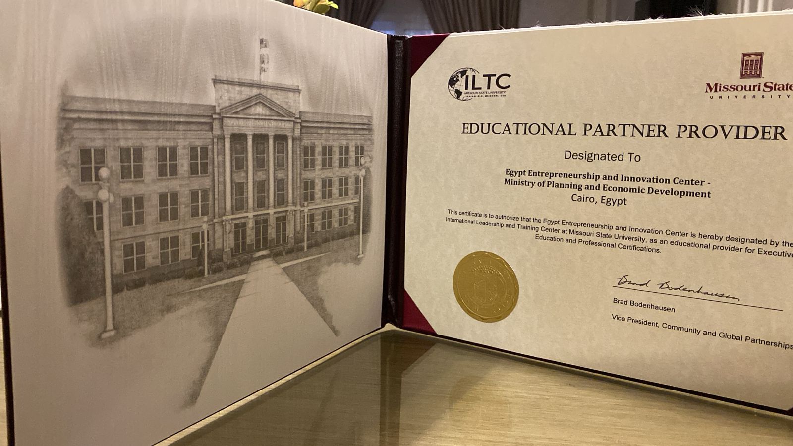 أعلن المعهد القومي للحوكمة والتنمية المستدامة عن حصول مركز مصر لريادة الأعمال والابتكار التابع للمعهد على شهادة الشراكة التعليمية في مجال ريادة الأعمال في مصر، من جامعة ولاية ميزوري الأمريكية، وذلك في حفل بحضور الدكتورة شريفة شريف، المدير التنفيذي للمعهد القومي للحوكمة والتنمية المستدامة.