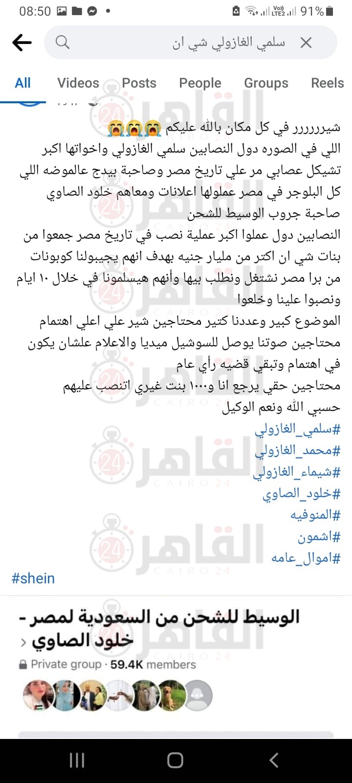 اتهمت مجموعة من الفتيات بلوجر تدعى سلمى الغزولي وشقيقها محمد، و«خلود.ا» صاحبة شركة شحن، بالنصب عليهم في مبلغ مالي قدرة 10 ملايين جنيه، بعد أن ادعت أنها تعمل في مجال الملابس الخاصة بماركة شي إن العالمية، عن طريق إعلانات روجت لها من خلال صفحات لبلوجر مشاهير في مصر، حيث زعمت إعطاؤهم خصومات على ملابس على كافة المنتجات عن طريق تحويل الأموال من خلال إنستا باي وتحويلات بنكية أخرى.