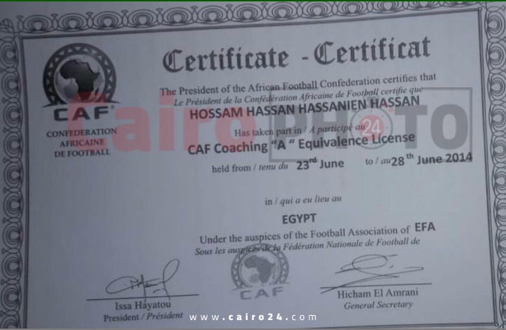 وأكد مصدر داخل اتحاد الكرة في تصريحات خاصة لـ القاهرة 24 أن حسام حسن حصل على الرخصة A من الاتحاد الإفريقي لكرة القدم عام 2014.
