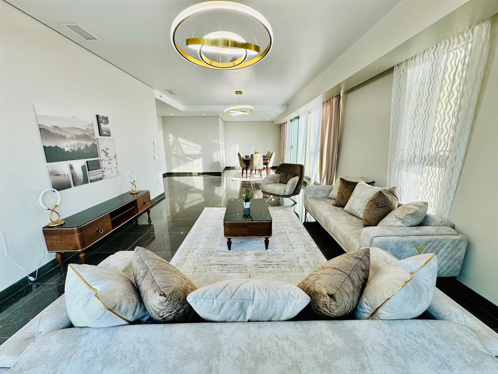 وقالت الشركة في بيان لها، إنه تم التركيز على تشطيب النموذج الداخلي من الوحدات على استخدام اللون الأسود والأبيض والرمادي، مما يُضفي عليها لمسة عصرية فيما يمزج التصميم بين الطراز الحديث المُبسّط والعناصر الذهبية والبنية التي تتميز باللمسة الجمالية المصرية.