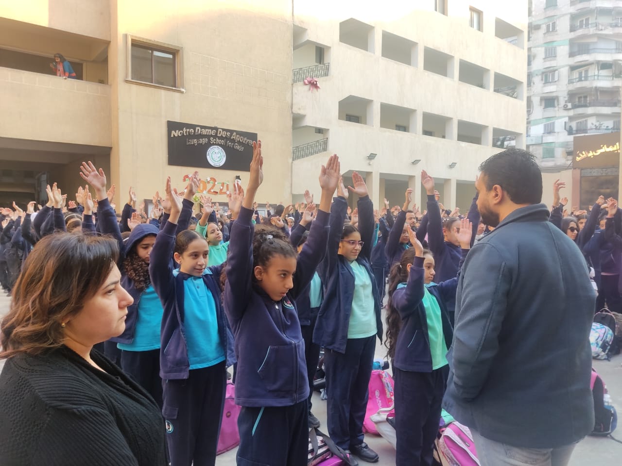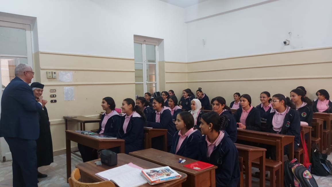 وتابع محمد الشابوري، وكيل إدارة الوايلي التعليمية، مدرسة نوتردام العباسية، وكان في استقباله سير ايزابيل مديرة المدرسة.