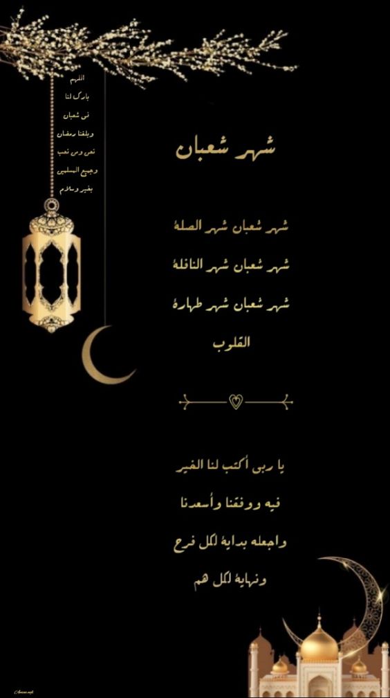 - اللهم بلغنا شعبان مجبورين الخاطر، وبارك لنا فيه، واكتب لنا فيه مغفرة للذنوب وتقبل للأعمال الصالحة.