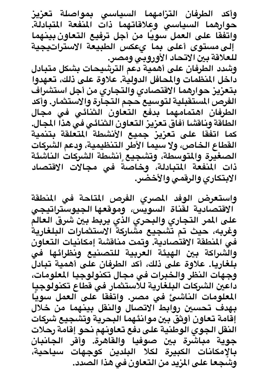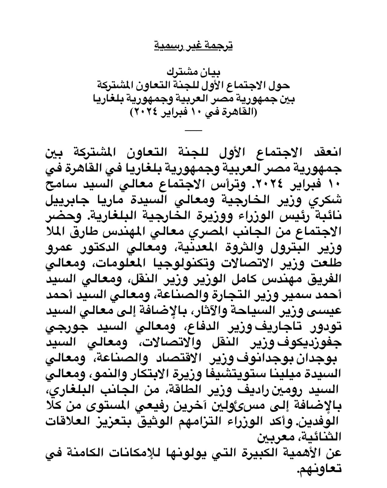 بيان مشترك حول الاجتماع الأول للجنة التعاون بين مصر وبلغاريا