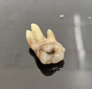 ووصف لانجستون، قائلًا: عندما أمسكت بها كان الأمر مؤلمًا بشدة وكانت صدمة عندما سحبت هذا الضرس وخرج نظيفا تمامًا، من خلال الشد قليلًا وسحب الزردية لأعلى، حيث أن الأمر كان فظيعًا.