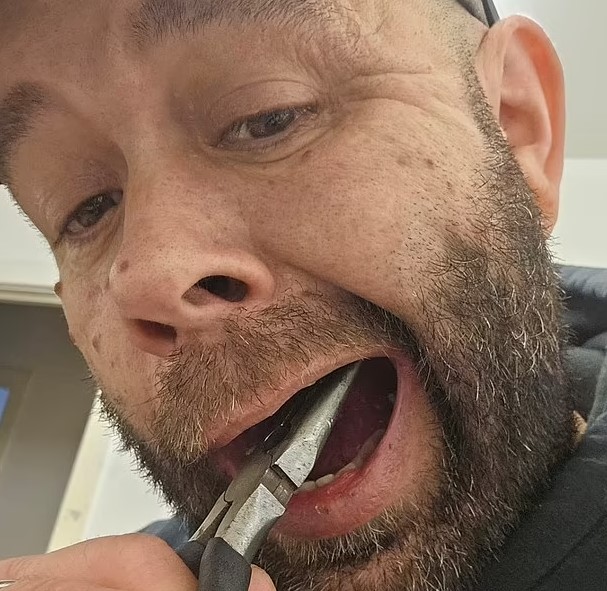 بسبب أزمة الأطباء في بريطانيا.. رجل خمسيني يخلع أسنانه بالزردية