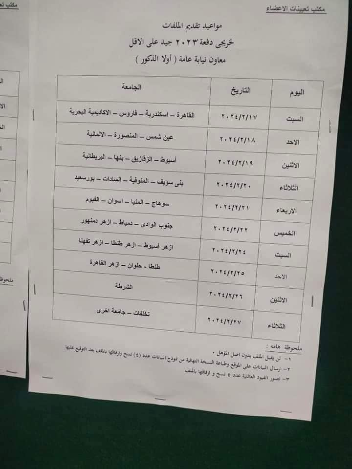 - لابد من الالتزام بـ مواعيد تقديم النيابة العامة في التواريخ المعلنة للذكور والإناث.