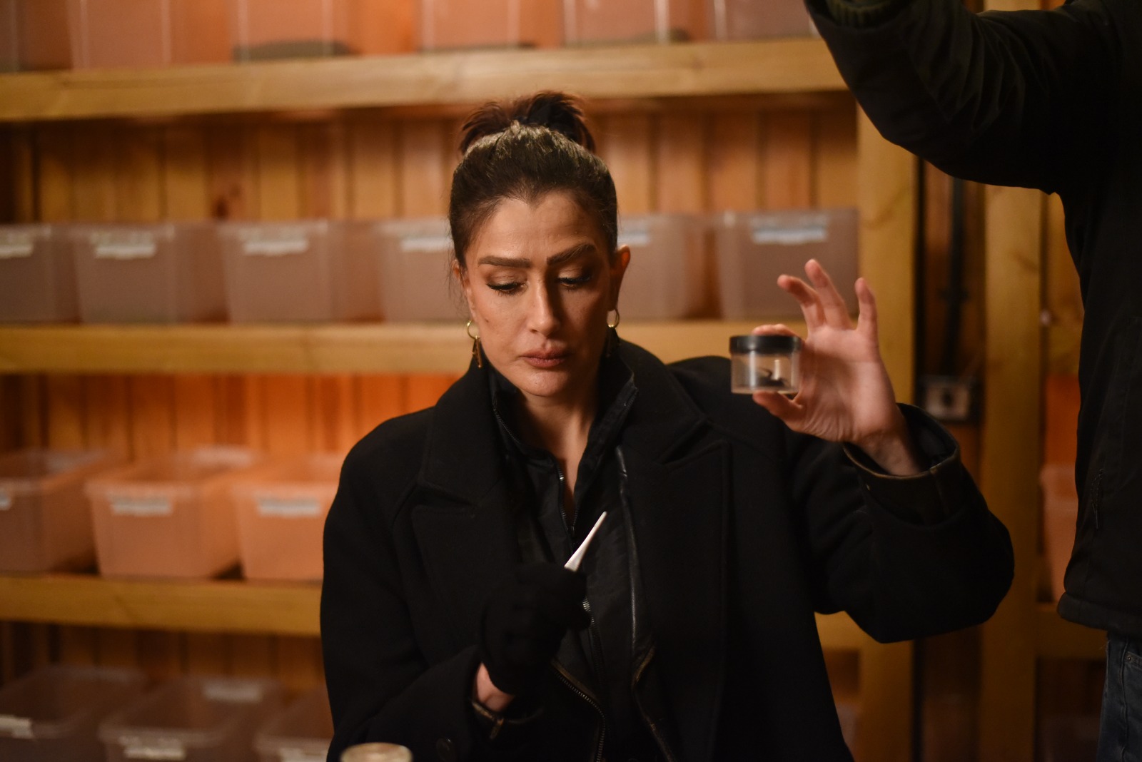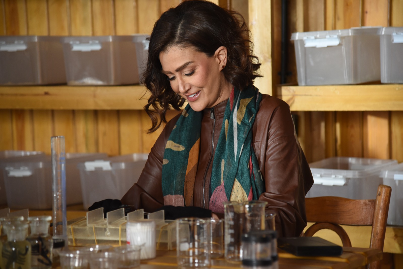 وظهرت الفنانة غادة عبد الرازق، وسط باقي أبطال مسلسل صيد العقارب، كما ظهرت في المعمل الخاص بها تستخرج السم من العقارب.