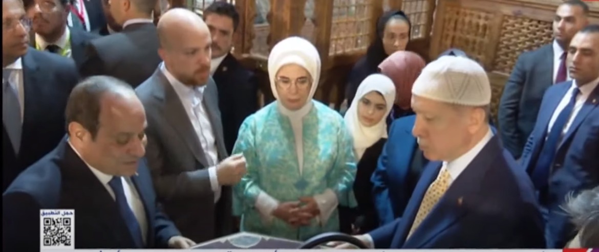 ورافق الرئيسان السيدة انتصار السيسي قرينة الرئيس السيسي، وأمينة أردوغان، زوجة الرئيس أردوغان، حيث تفقدوا مسجد الامام الشافعي، ومقام الإمام، وذلك قبل رحيل الرئيس أردوغان عن مصر.
