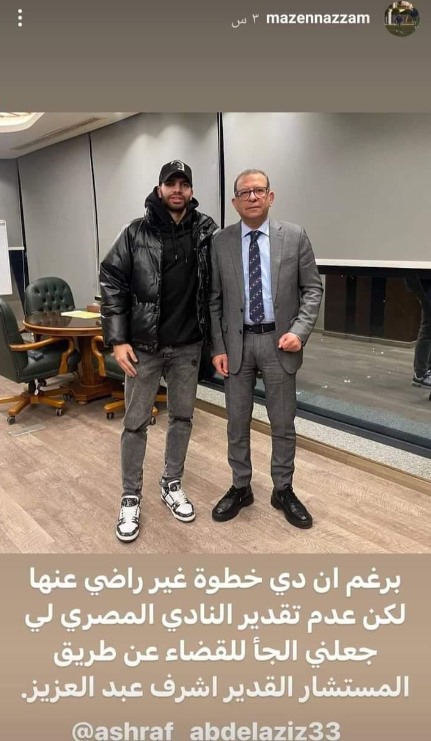 اليوم، بشكوى رسمية إلى اتحاد بعد فسخ تعاقده من طرف واحد وعدم حصوله على مستحقاته المالية لدى المصري.
