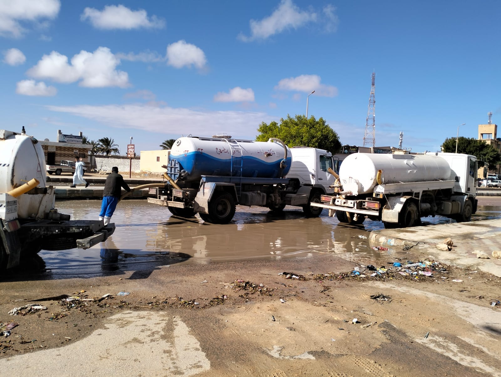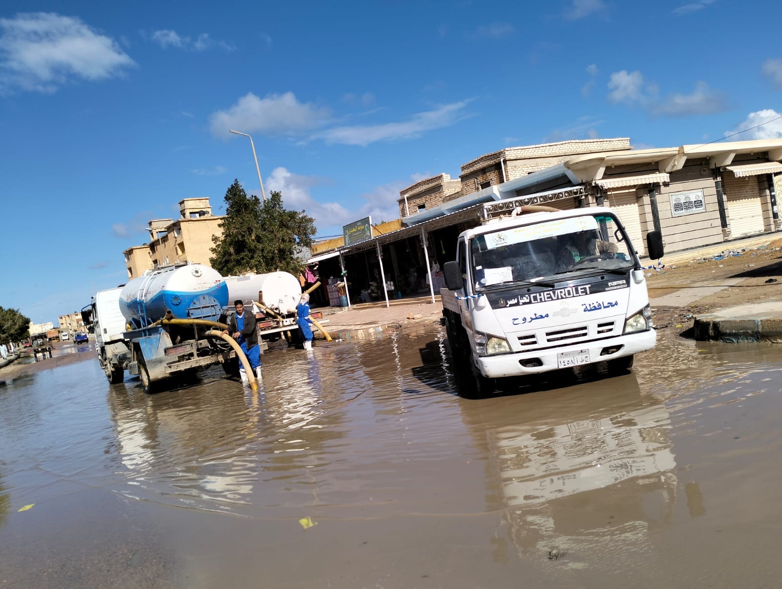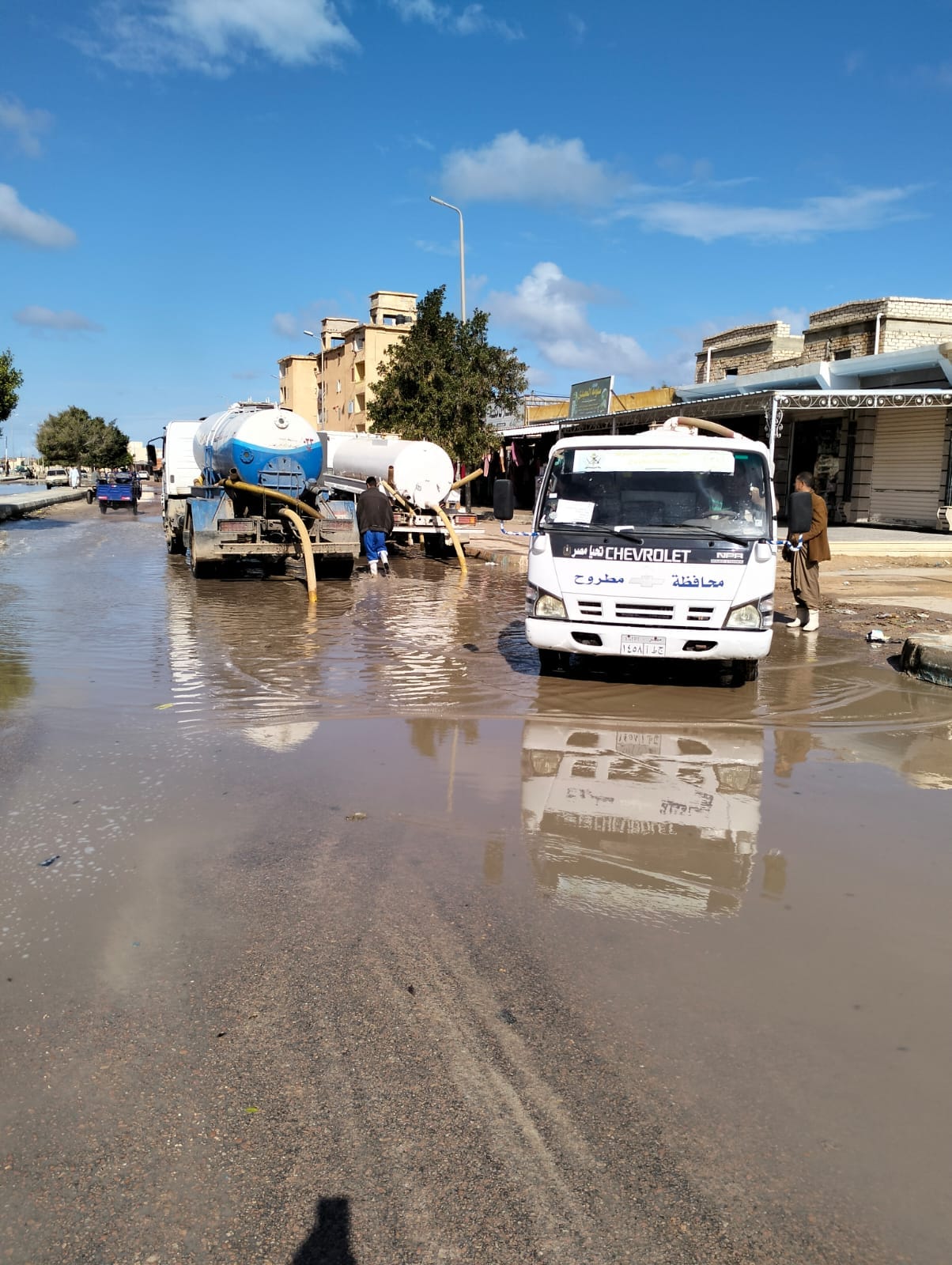 ففي مدينة مرسي مطروح، تواصل معدات وأفراد مجلس المدينة برئاسة العميد عمرو عبدالمجيد رئيس المدينة، وبالتعاون مع شركة مياه الشرب والصرف الصحي برئاسة الدكتور إبراهيم خالد رئيس مجلس إدارة شركة مياه الشرب والصرف الصحي جهود إزالة المياه بشارع الجلاء وشكري القواتلي، وشارع المحطة وبمنطقة مقابر المغاربة وكفر الشيخ ومتابعة جهود إزالة تراكمات مياه الأمطار مع الدفع بسيارات ومعدات شركة مياه الشرب والصرف الصحي بمطروح والتأكد من تصريف بلاغات شنايش صرف مياه الأمطار بصرف المياه للإسراع في إزالة المياه لتيسير حركة المرور أمام المواطنين.