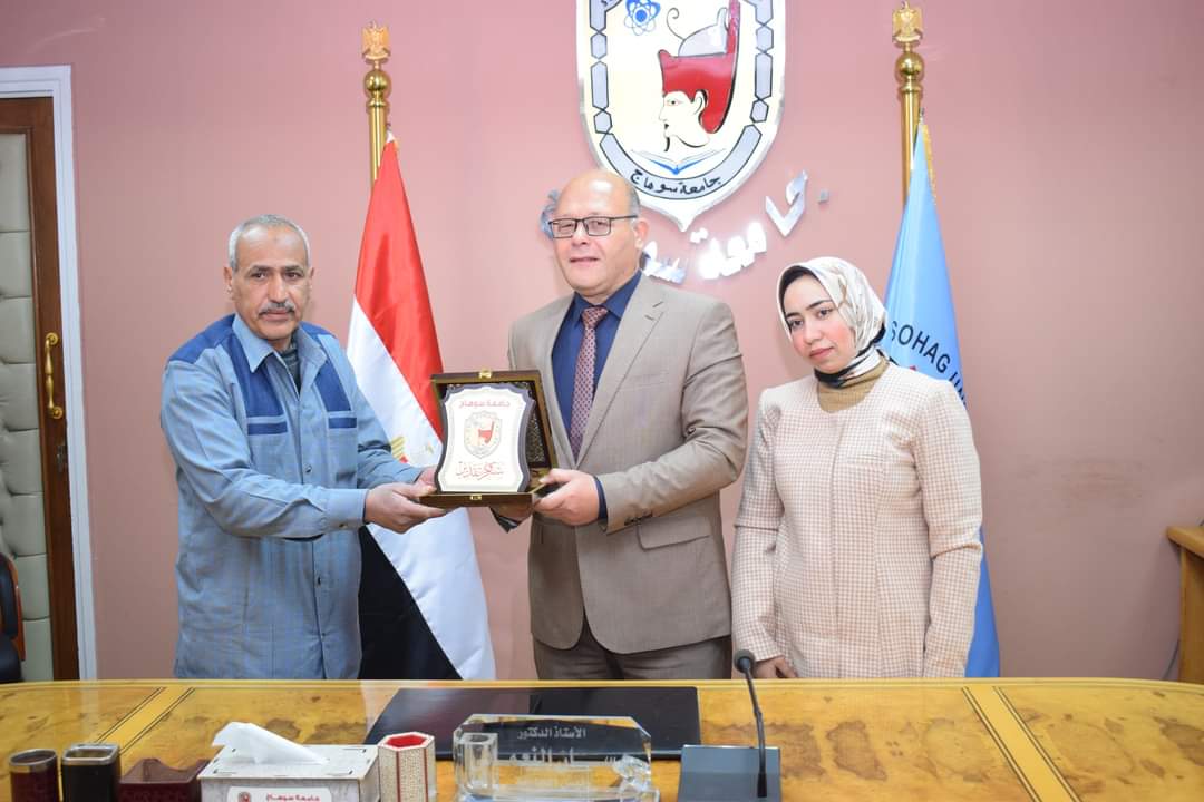 رئيس جامعة سوهاج يكرم عم عمر ونجلته أسماء لتعيينها معيدة بقسم الإعلام