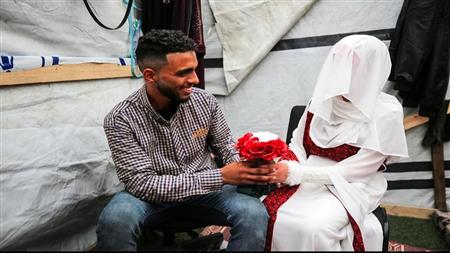 وكانت الصور التي تم تداولها باستشهاد العروسين ليست صحيحة، فالعروسان على قيد الحياة يعيشان داخل خيمتهما في مدينة دير البلح بالمحافظة الوسطى في قطاع غزة.