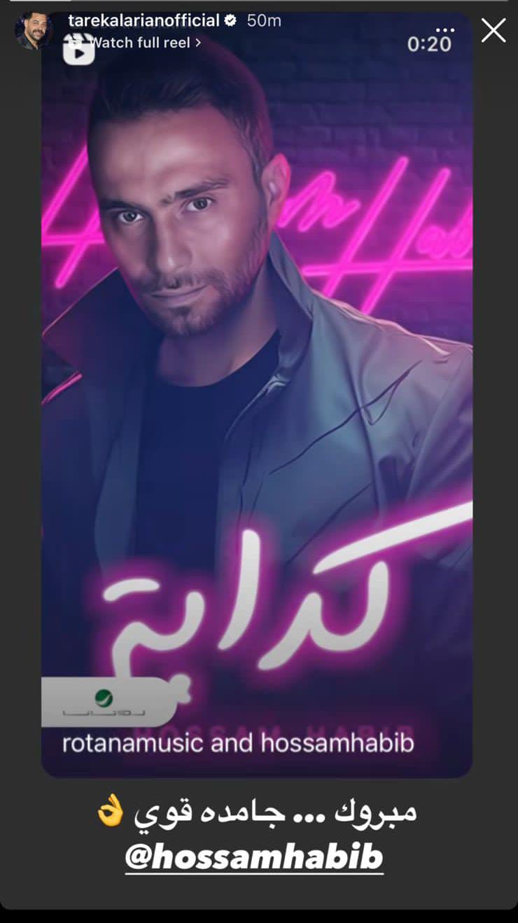 ونشر طارق العريان صورة البوستر الرسمي لأغنية كدابة لـ حسام حبيب، عبر حسابه الشخصي بموقع انستجرام، وعلق عليه قائلًا: مبروك جامده أوي.