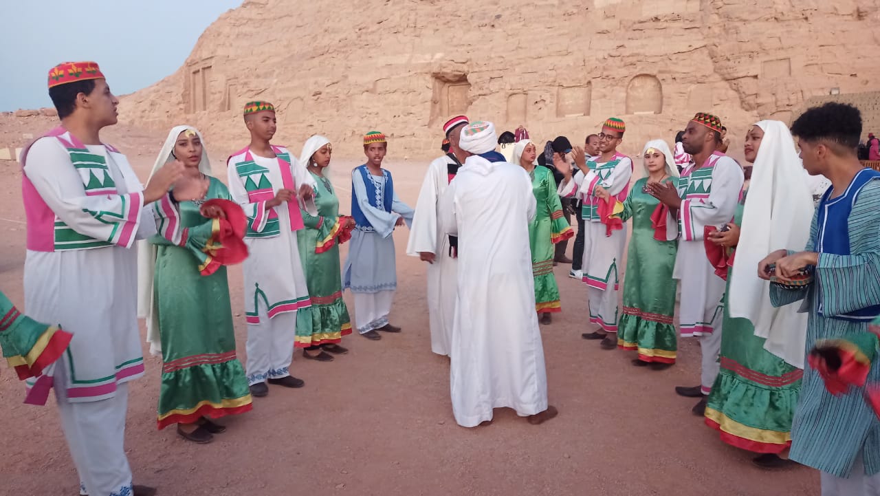 فرق مهرجان أسوان تحتفل بتعامد الشمس بمعبد أبو سمبل