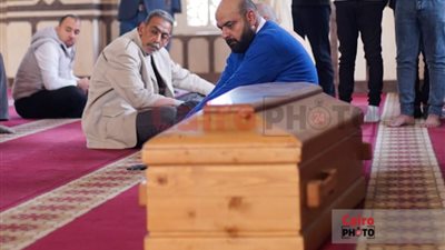 واقف جنب النعش.. انهيار حفيد الدكتور هاني الناظر في جنازة جده