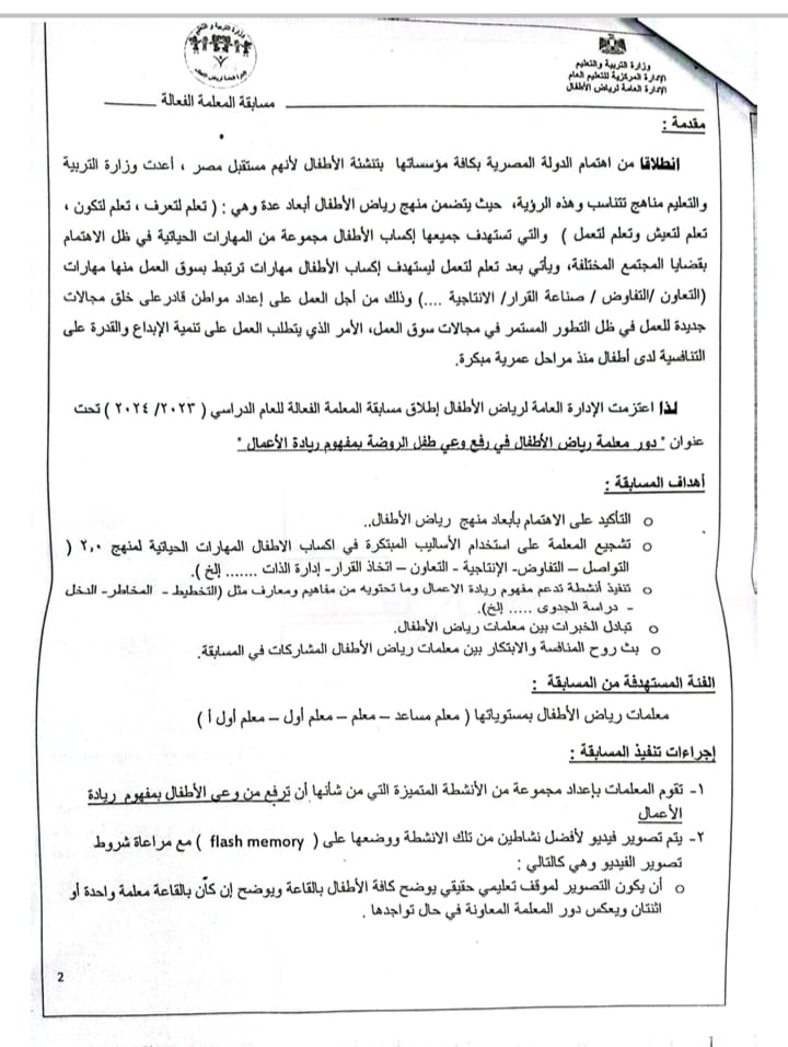 التعليم تعلن تفاصيل مسابقة المعلمة الفعالة لرياض الأطفال 2024 | مستندات