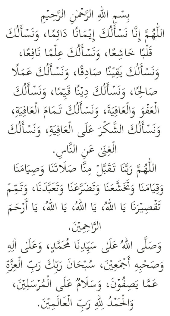 - ربنا اجعلنا لك ذكارين، لك شكارين، إليك أواهين منيبين، تقبل يا رب توبتنا، واغسل حوبتنا، وأجب دعواتنا، وثبت حجتنا، واسلل سخائم صدورنا، وعافنا واعف عنا.