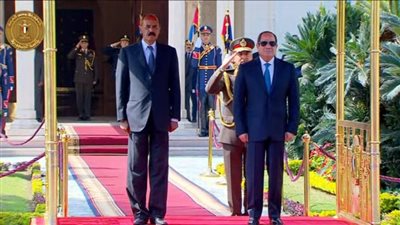 استقبل الرئيس عبد الفتاح السيسي، اليوم بقصر الاتحادية، الرئيس الإريتري أسياس أفويرقي، حيث أقيمت مراسم الاستقبال الرسمي وتم عزف السلامين الوطنيين واستعراض حرس الشرف.