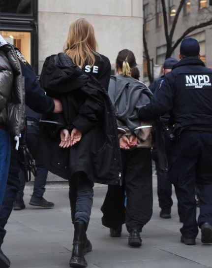 ووفقًا لـ رجال الشرطة، فإن نجمة فيلم Euphoria هانتر شيفر كان من بين 33 متظاهرًا تم احتجازهم لدى الشرطة لاقتحامهم مركز روكفلر 30 التابع لشبكة إن بى سى فى المدينة.