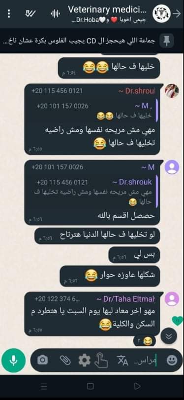 وانتشر على صفحات مواقع التواصل الاجتماعي محادثات بين الطلبة في جروب خاص لكلية الطب البيطري بجامعة العريش عن تهديدات وابتزاز للطالبة، ونشر صور لها على جروبات الجامعة وصفحات التواصل الاجتماعي.