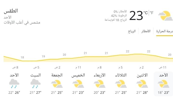 وفيما يلي بيان بدرجات الحرارة ونسب الرطوبة العظمى والصغرى المتوقعة بالدولة غدا: