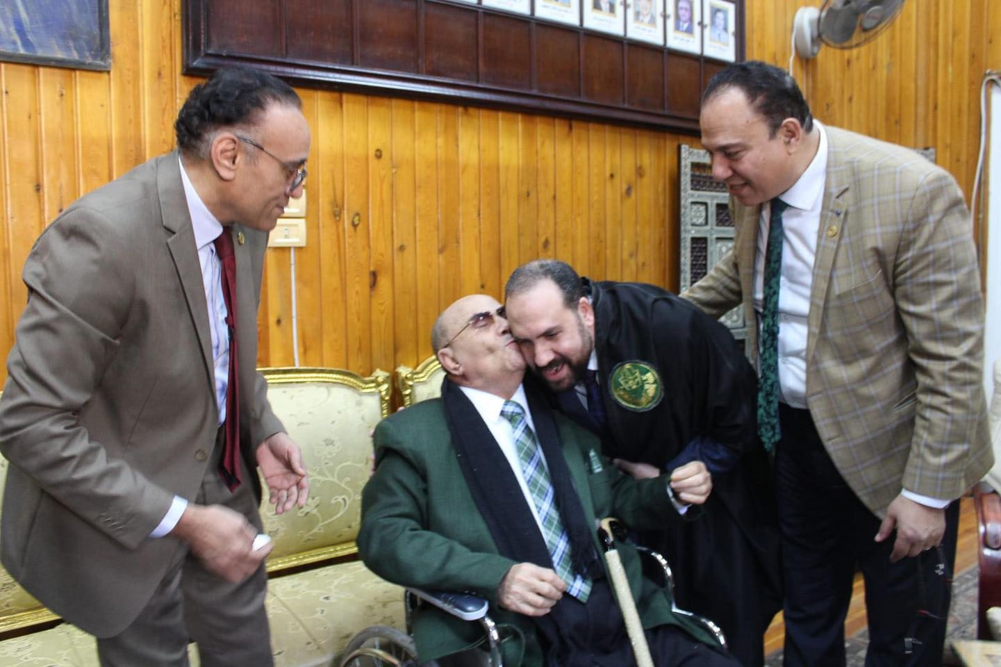 مبروك عطية يظهر على كرسي متحرك خلال مناقشة نجله رسالة الدكتوراه بجامعة الأزهر