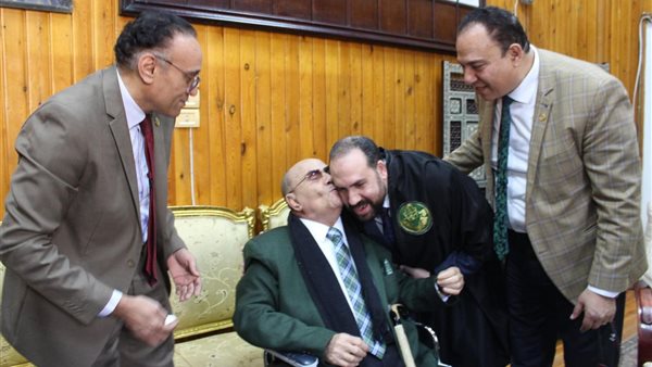 مبروك عطية يظهر على كرسي متحرك خلال مناقشة نجله رسالة الدكتوراة بجامعة الأزهر