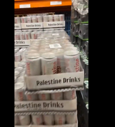 وتداول مستخدمو مواقع التواصل الاجتماعي، مشهد فيديو يظهر صناديق محملة بالمشروب الجديد، وكتب عليها "مشروب فلسطين".