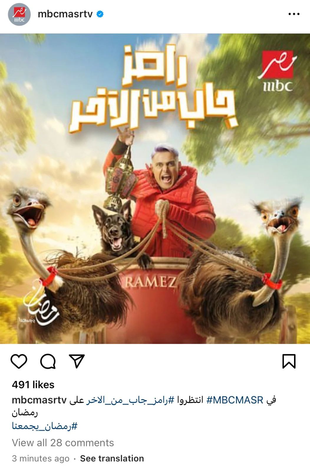 ونشرت قناة MBC البوستر الرسمي لبرنامج رامز جلال، على حسابها الرسمي على موقع تبادل الصور والفيديوهات انستجرام، معلقة: انتظروا رامز جاب من الآخر في رمضان.