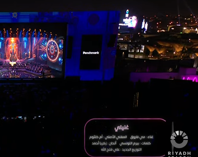 تقدم الفنانة مي فاروق حفلا غنائيًا بالمملكة العربية السعودية، ضمن حفلات ختام فعاليات موسم الرياض، والحفل بقيادة المايسترو هاني فرحات، ويقام حاليًا على خشبة مسرح أبو بكر سالم.