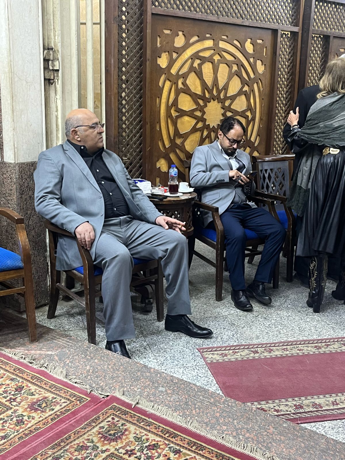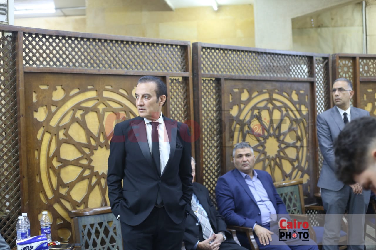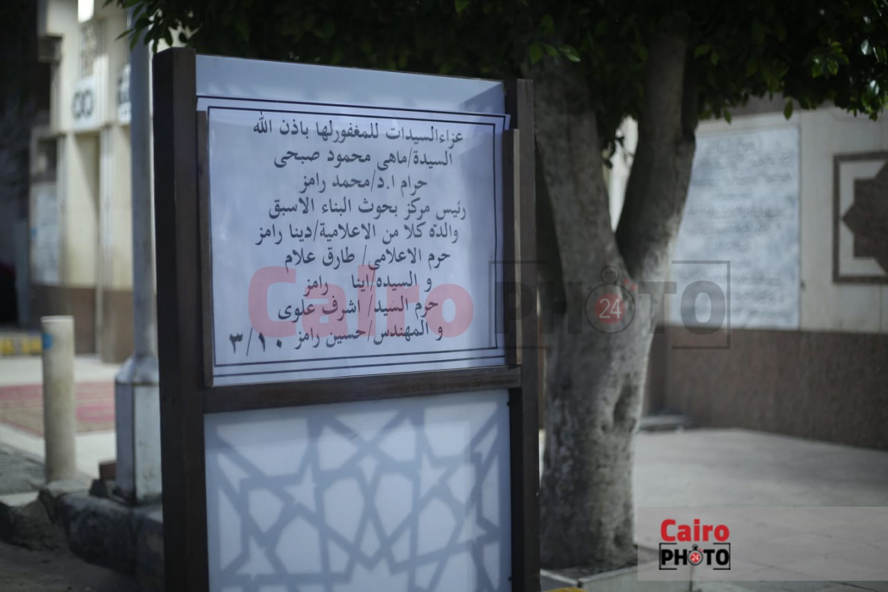 طارق علام يستقبل المعزين في وفاة حماته بمسجد الحامدية الشاذلية