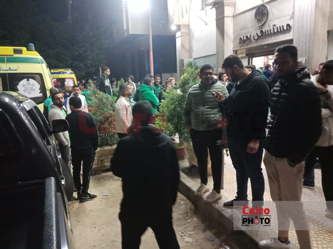 جماهير الاتحاد السكندري تحتشد أمام المستشفى للاطمئنان على حالة أحمد رفعت لاعب فيوتشر |صور