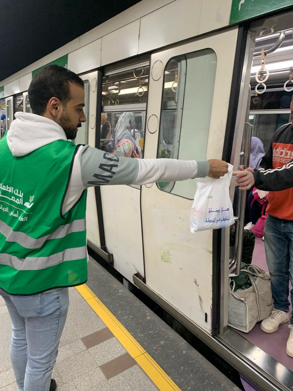 ونسق متحدث مترو الأنفاق أحمد عبدالهادي بكير مع فريق عمل بنك الطعام المصري، لتوزيع عدد خمسة آلاف وجبة خفيفة لإفطار صائم يوميا على جميع الركاب المتواجدين بالمحطات وداخل القطارات وقت أذان المغرب، موضحا أن وجبة الإفطار الخفيفة تحتوى على زجاجة مياه وعصير وبسكويت.
