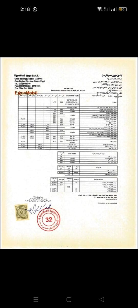 كما قررت شركة بترومين رفع أسعار الزيوت المحلية والمستورة بداية من 2 مارس الجاري، في حين بلغت آخر زيادة لشركة كاسترول للزيوت في فبراير الماضي، كما قررت شركة إكسون موبيل مصر رفع أسعار منتجاتها، وجاءت الأسعار كالتالي: