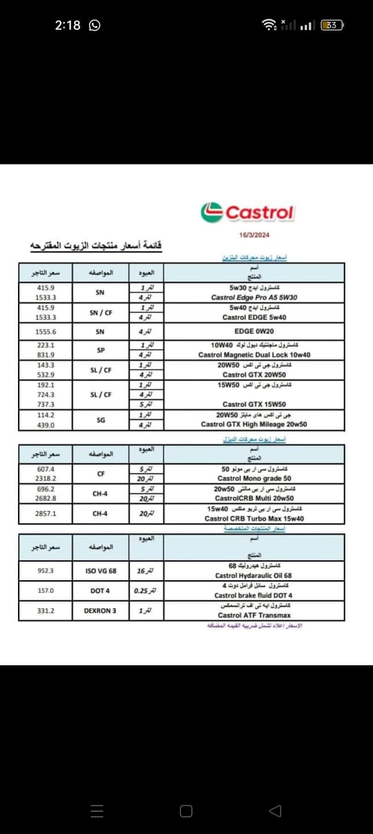 في حين جاءت الزيادة الأخيرة لأسعار زيوت محركات البنزين والديزل والمنتجات المتخصصة لشركة كاسترول في فبراير الماضي، لتقرر الشركة رفع أسعار منتجاتها مرة أخرى اعتبارا من 16 مارس الجاري.